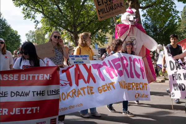 Kampagne Tax the richSie können die attac Bundestagspetition unterschreiben, indem sie auf den Schriftzug tax the rich oben tippen.