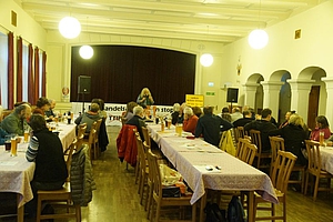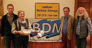 Lucia Egner hat vor Beginn des Vortrags eine Aktion des Bundesverbands Deutscher Milchviehhalter (BDM) und der Arbeitsgemeinschaft bäuerliche Landwirtschaft (AbL) vorgestellt. Die beiden Organisationen, die beide Mitglied des „Stoppt TTIP/CETA/TISA“‐Bündnisses Weilheim‐Schongau sind,