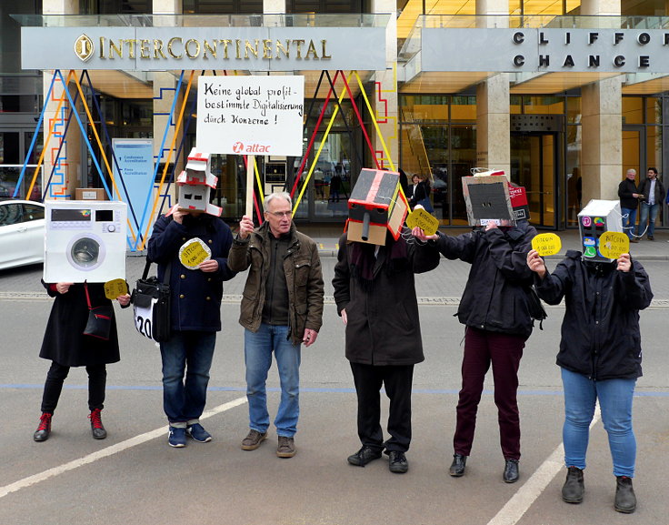 Attac-Aktivist_innen aus NRW demonstrierten beim Treffen der G20-Digitalminister gegen die Datensaugerei der globalen Großkonzerne ("Kraken greifen Deine Daten - G20 und die Industrie 4.0"). Mehr Infos auf der Seite "Mutbürgerdokus".