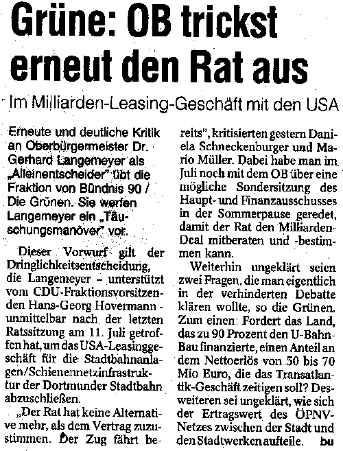 Artikel über Dortmunder Pläne zum Cross-Border-Leasing Mehr ...