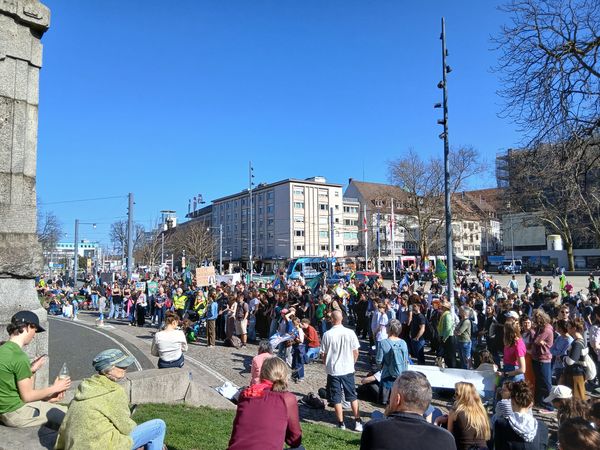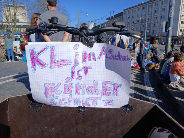 Wir waren viele hunderte Teilnehmende aus dem ganzen Spectrum der Freiburger NGOs und der Zivilgesellschaft aus -und weiteren Rund und Umgebung von Freiburg. Kinder, Jugendliche, SchülerInnen, StudentInnen, Eltern, Grosseltern usw. waren mit Bannern, Schildern, mit Sprüchen und Parolen unterwegs. Auf einer kleinen Bühne redeten junge Leute u.a. über ihre Bedenken gegenüber der Klimapolitik unserer Regierung.