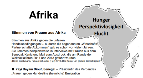Beteiligung am Weltfrauentag und 1. Mai 2023 Erstellen und Verteilen von Flyern zu Wirtschaftsbeziehungen zwischen Afrika und der EU