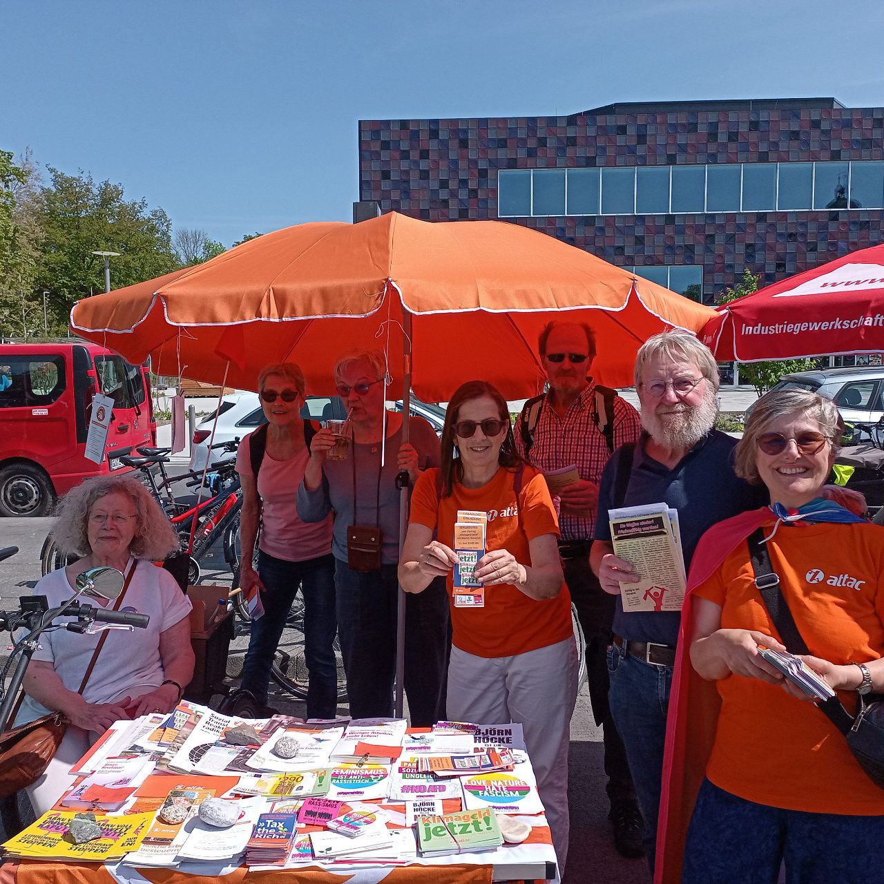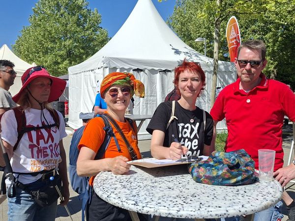 Faire Woche 2024: Verteilen von Flyern zur Kampagne Tax the Rich und Unterschriftensammlung für EBI