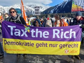 Attac ruft zur Teilnahme an der Protestwanderung nach Davos auf und fordert eine Überwindung der profit- und wachstumsorientierten Wirtschaft. Mit der bundesweiten Attac-Kampagne „Tax the Rich“ und einer erfolgreichen Bundestagspetition setzt sich Attac aktuell für die Wiedereinsetzung der Vermögensteuer für Überreiche ein – denn Demokratie geht nur gerecht!