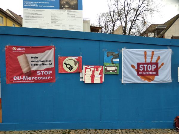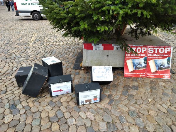Protestaktion gegen Freihandelsabkommen EU-Mercosur Freiburg Augustinerplatz am Samstag, 15.11.25 , 10.00 bis 12.30