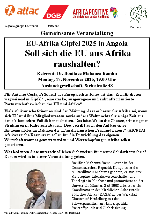 Vortrag mit anschließender Diskussion im Rahmen der monatlichen Veranstaltungsreihe von Attac Dortmund und DGB Dortmund.