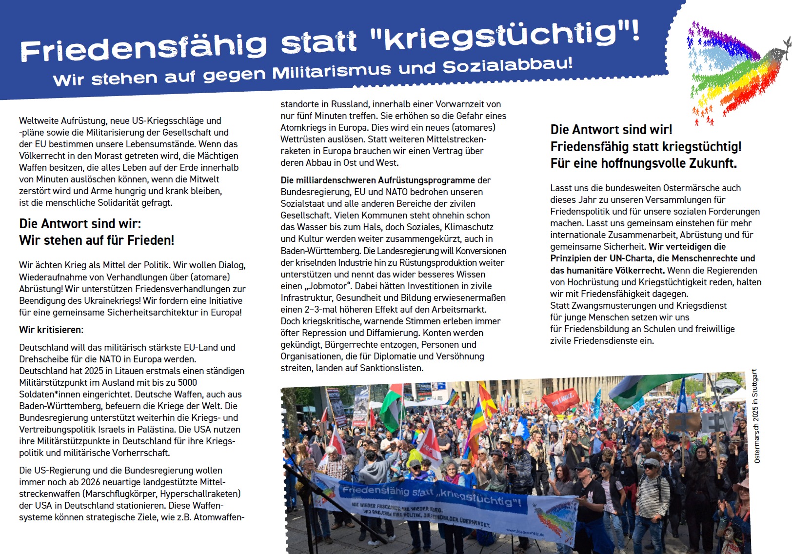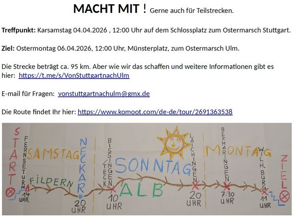 Ostermarsch Stuttgart Karsamstag und Friedensmarsch Stuttgart-Ulm bis Ostermontag