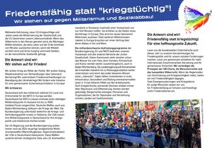 Am Freitag, 3. Oktober findet ab 13 Uhr eine Friedensdemo in Stuttgart statt. Die Attac-Gruppe plant eine gemeinsame Bahn-Anreise, 11:50 Uhr ab Besigheim und freut sich auf viele Mitfahrer!