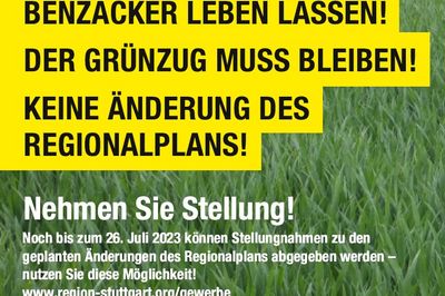 Am 28.7.2021 hatte die Regionalversammlung des Regionalverbands Stuttgart beschlossen, eine Änderung des Regionalplans zur Festlegung der Benzäcker als Gewerbeschwerpunkt einzuleiten. Im Oktober 2021 erfolgte dann die frühzeitige Unterrichtung der öffentlichen Stellen. Der BUND, RP Freiburg - Forstdirektion, Großbottwar, Bauernverband, LNV. Landratsamt LB und andere antworteten (Siehe in den Dokumenten unten 06-Sonstige-Unterlagen_Stn_fruehz_Unterrichtung.pdf)