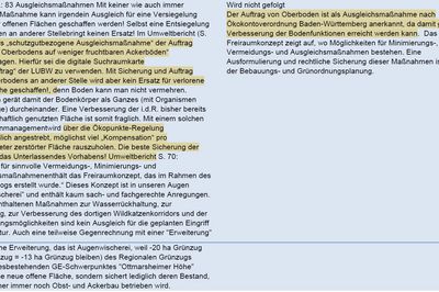 Wie zum Flächennutzung 2022 wurden die Stellungnahmen in geübter Praxis von der Verwaltung abgewehrt. Diese Antworten der Verwaltung können abermals verrissen werden. Interessant ist, das auch so manche öffentliche Stelle in unserem Sinne Einwände erhob, wenn auch nicht so konsequent.