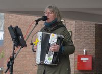 Vor der Ausschusssitzung hatte das Bündnis "Rhein Lippe Aue Bleibt!" eine Kundgebung vor dem Weseler Rathaus organisiert. Mit dabei war die Akkordeon-Spielerin Maria Arians, die die Veranstaltung musikalisch mit einigen Protestliedern begleitete.