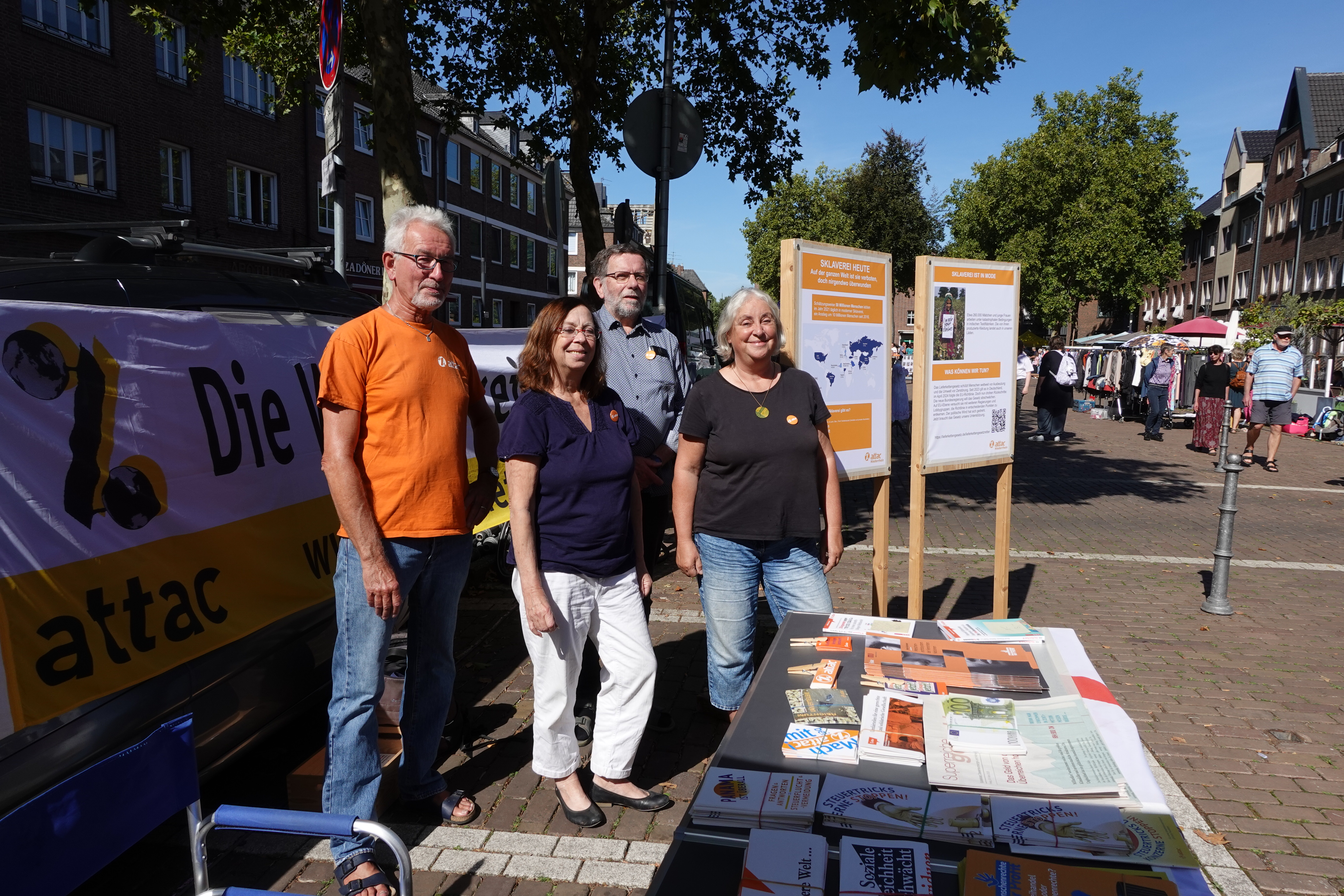 attac-Niederrhein nahm mit einem Infostand und einer öffentlichen Diskussion mit der Mode-Designerin Antje Ruitter zum Thema Fast Fashion teil.