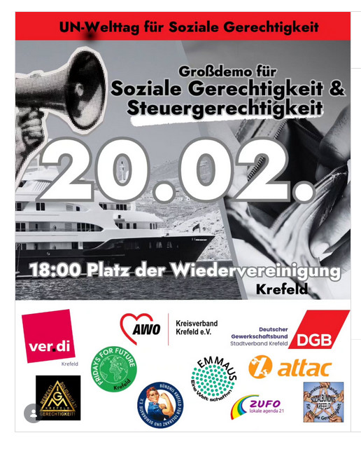Demonstration für Steuergerechtigkeit Freitag, 20. Februar in Krefeld