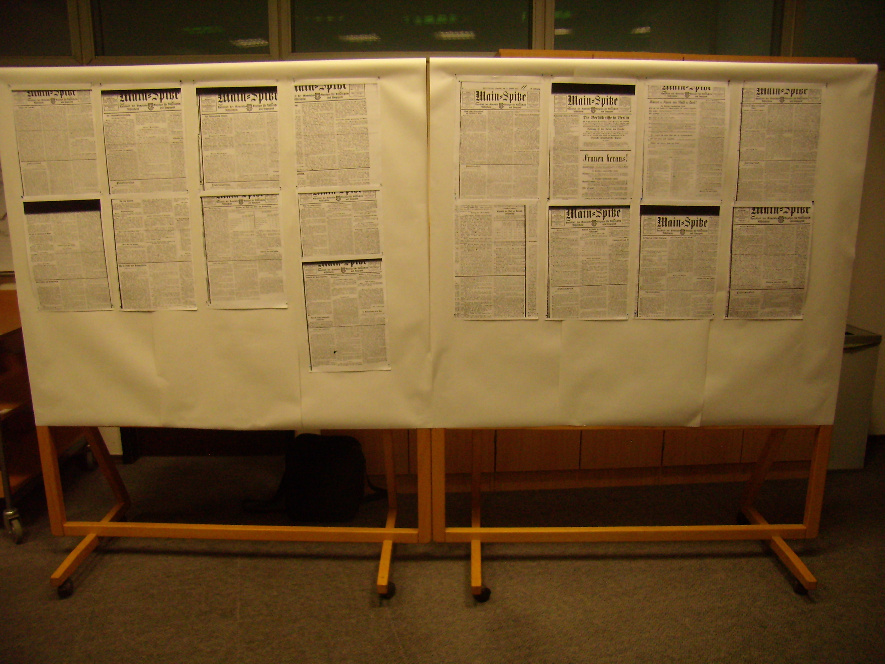 Die Infowände (ausgewählte Main-Spitze-Titelseiten 1918/19)
