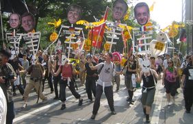 Am 9. Juli endete das diesjährige Treffen der selbsternannten Weltlenker, der Chefs der acht mächtigsten Staaten (G8). Unsere Bewertung dieser Gipfel lässt sich klar formulieren: "Die G8 haben keine Lösungen. Im Gegenteil, sie verursachen und verschärfen die Probleme. Kompromissloser Protest ist die effektivste Strategie gegen solche Institutionen" (Walden Bello). Ganz in diesem Sinne hat Attac Japan von langer Hand maßgeblich an den Gipfelprotesten vor Ort mitorganisiert. Und so gab es im Rahmen der G8-Aktionswoche unter anderem eine Gegendemo mit etwa 5.000 Aktiven aus Japan und weiteren 50 Ländern sowie einen Alternativgipfel mit etwa 80 Veranstaltungen – für japanische Verhältnisse ein großer Erfolg. Mittendrin dabei unsere Delegation von Attac D, die als Teil des internationalen Protestspektrums mitdemonstrierte und uns per Internet-Radio, Online-Tagebuch (Blog) und mit Pressemitteilungen über die Ereignisse vor Ort auf dem Laufenden gehalten hat. Auch in Deutschland gab es G8-kritische Proteste, unter anderem in Stuttgart, Köln, Berlin und Lindau.