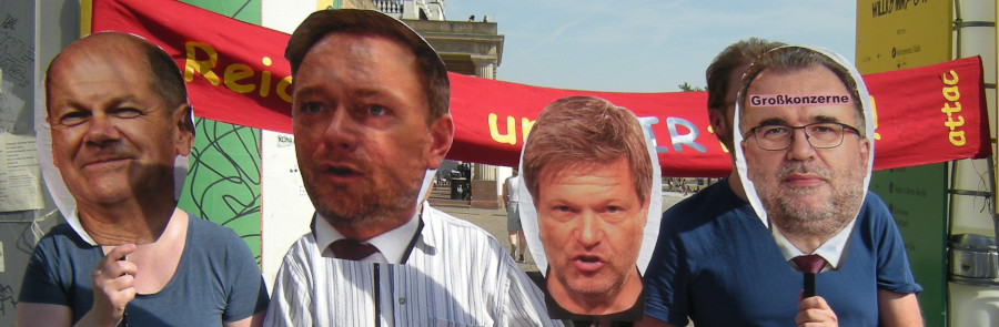 Politik, Großkonzerne und Großbanken äußern ihre Vorstellungen zu Forderungen nach Umverteilung des gesellschaftlichen Reichtums.