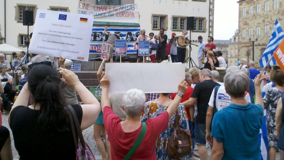 Zusammen mit den Anstiftern haben wir die Initiative ergriffen und am FR,03.07. auf dem Schillerplatz eine Solidaritätskundgebung für Griechenland veranstaltet, siehe auch die Berichterstattung in den Stuttgarter Nachrichten.