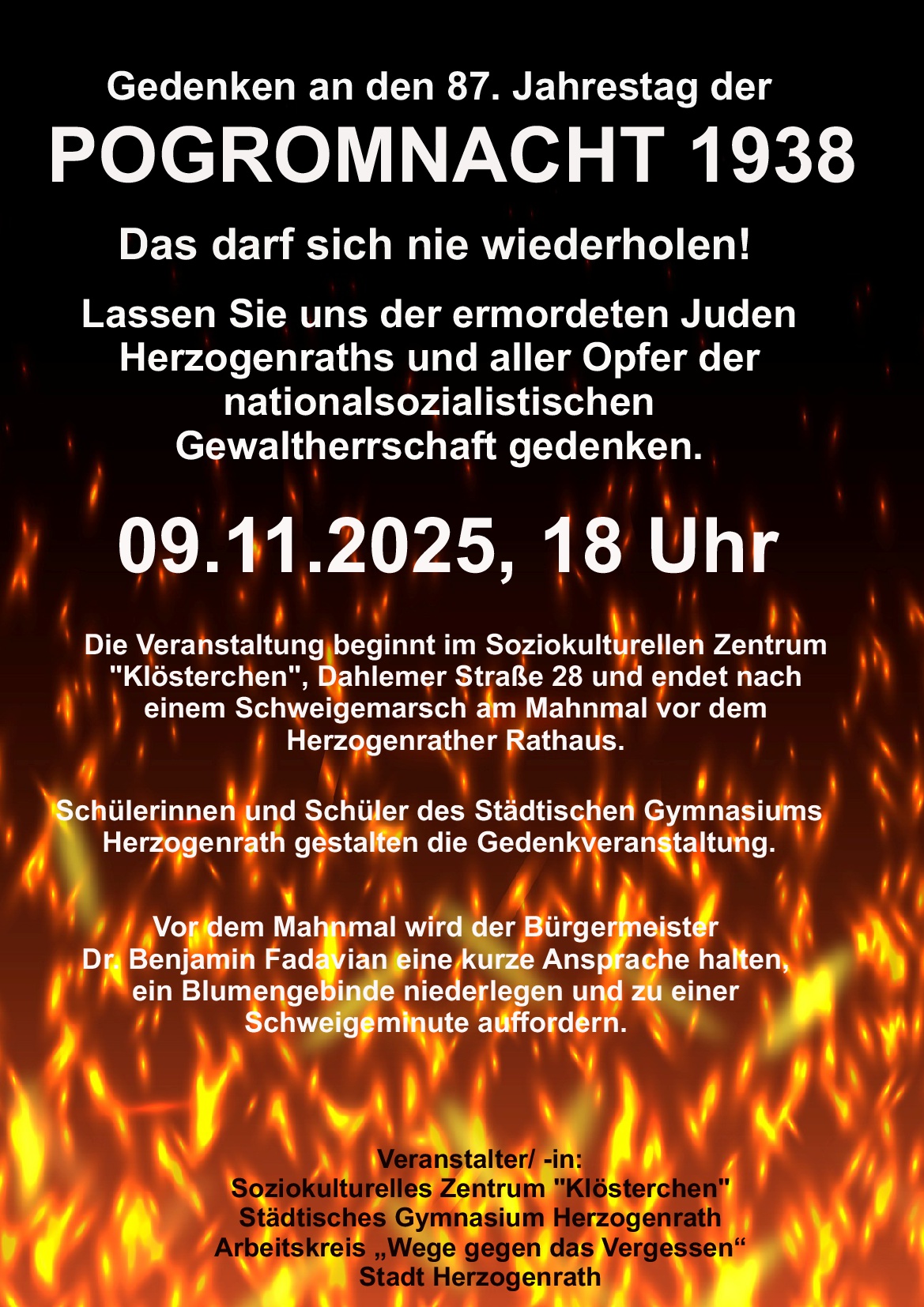 Gedenkveranstaltung, 9. November, Klösterchen. Infos finden Sie hier